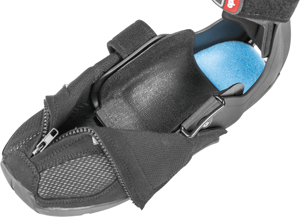 - Нагрузка на пяточную кость повышается постепенно и дозированно благодаря использованию специальных подпяточных вкладышей.