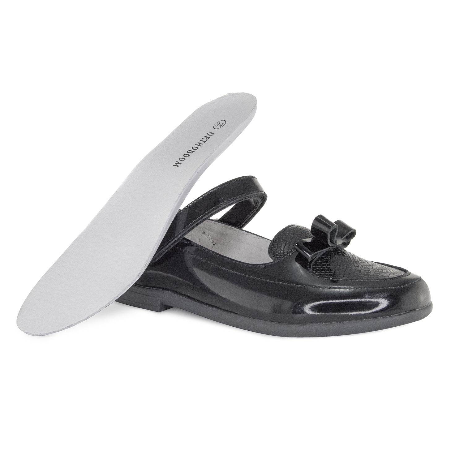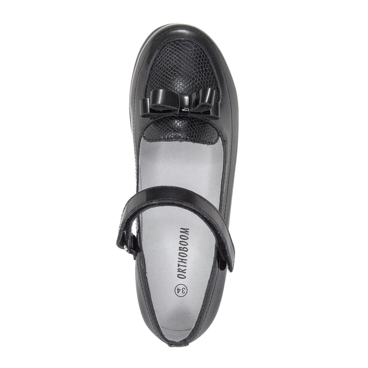 Ортопедические туфли Orthoboom 47057-09 черный отлично подходят для детских праздников и повседневных прогулок. Их можно взять в качестве сменной обуви в школу или детский сад. Ребенку в них будет комфортно. Обувь способствует профилактике развития плоскостопия. Плотный формообразующий задник PreVent ставит и поддерживает стопу в анатомически правильном положении. Съемная стелька-тренажер StepEx с поддержкой сводов стопы и углублением для пятки равномерно распределяет нагрузку по стопе. Такая конструкция стельки также способствует естественному укреплению мышц стопы. Подошва гибкая, не скользящая с перекатом в носочной части, комфортная, способствует формированию правильной походки. Подходит каждому ребенку для профилактики, а также рекомендована при начальных признаках развития вальгусной установки стоп.
