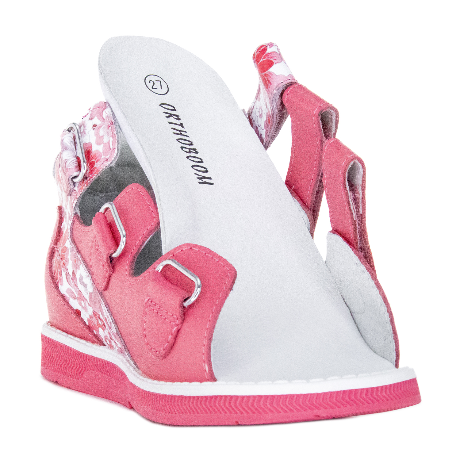 Детские профилактические сандалии Orthoboom 25057-04 коралловый с цветочным принтом — стильная и комфортная модель, в которой ребенок растет здоровым. Изготовлены из натуральной кожи. Подходят для каждого ребенка. Предназначены для профилактики плоскостопия и сколиоза. Также рекомендуются для коррекции начальных форм плоско-вальгусной деформации стоп.