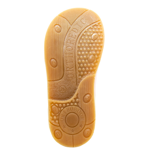- Продленный каблук Томаса с системой домашней диагностики 8ZTEST на подошве. По зонам истирания можно контролировать развитие стопы ребенка.