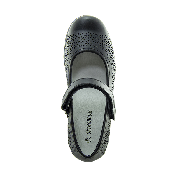 Ортопедические туфли Orthoboom 47397-10 черный с перфорацией отлично подходят для детских праздников и повседневных прогулок. Их можно взять в качестве сменной обуви в школу или детский сад. Ребенку в них будет комфортно. Обувь способствует профилактике развития плоскостопия. Плотный формообразующий задник PreVent ставит и поддерживает стопу в анатомически правильном положении. Съемная стелька-тренажер StepEx с поддержкой сводов стопы и углублением для пятки равномерно распределяет нагрузку по стопе. Такая конструкция стельки также способствует естественному укреплению мышц стопы. Подошва гибкая, не скользящая с перекатом в носочной части, комфортная, способствует формированию правильной походки. Подходит каждому ребенку для профилактики, а также рекомендована при начальных признаках развития вальгусной установки стоп.