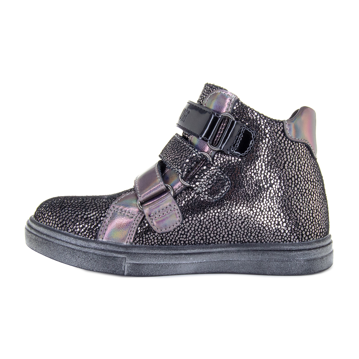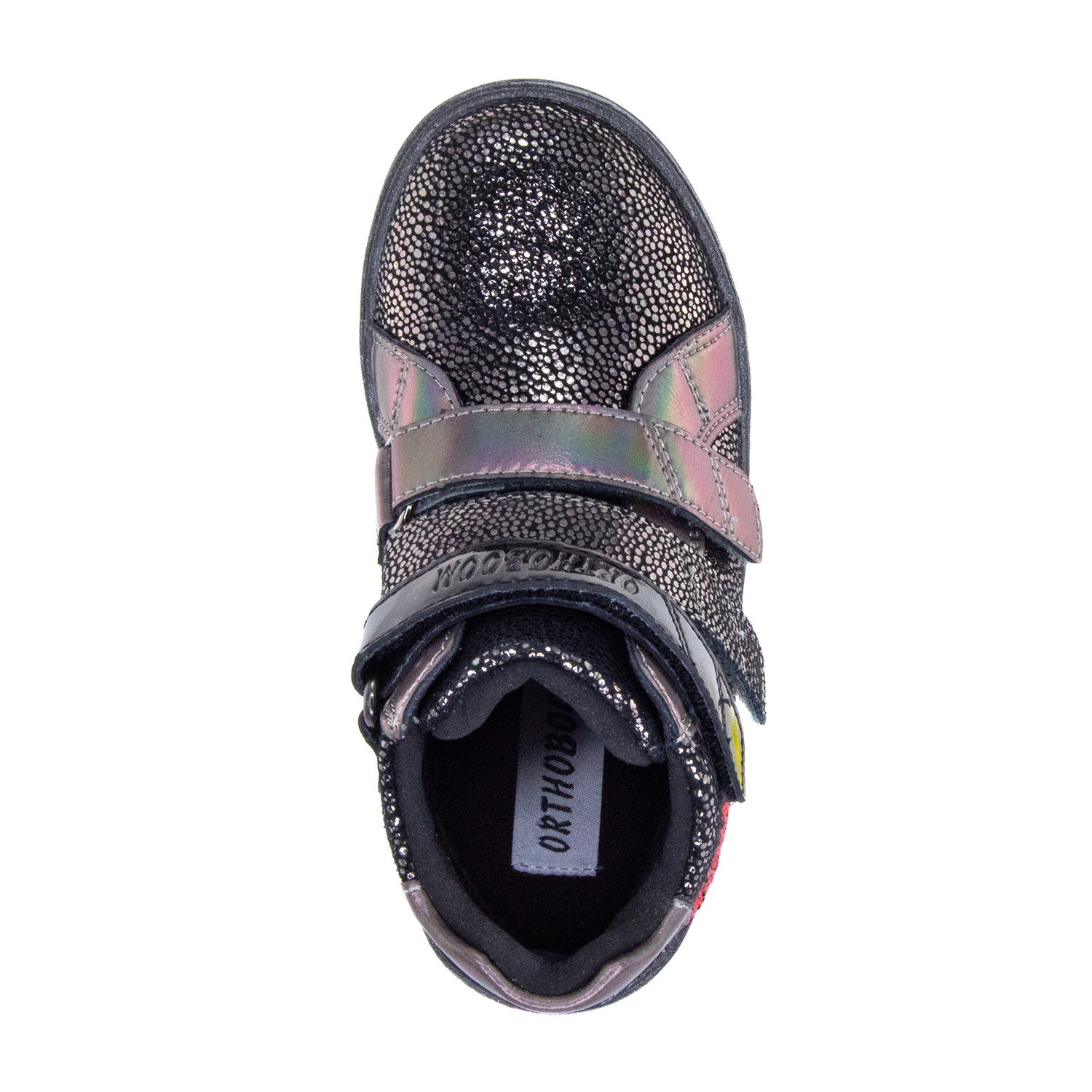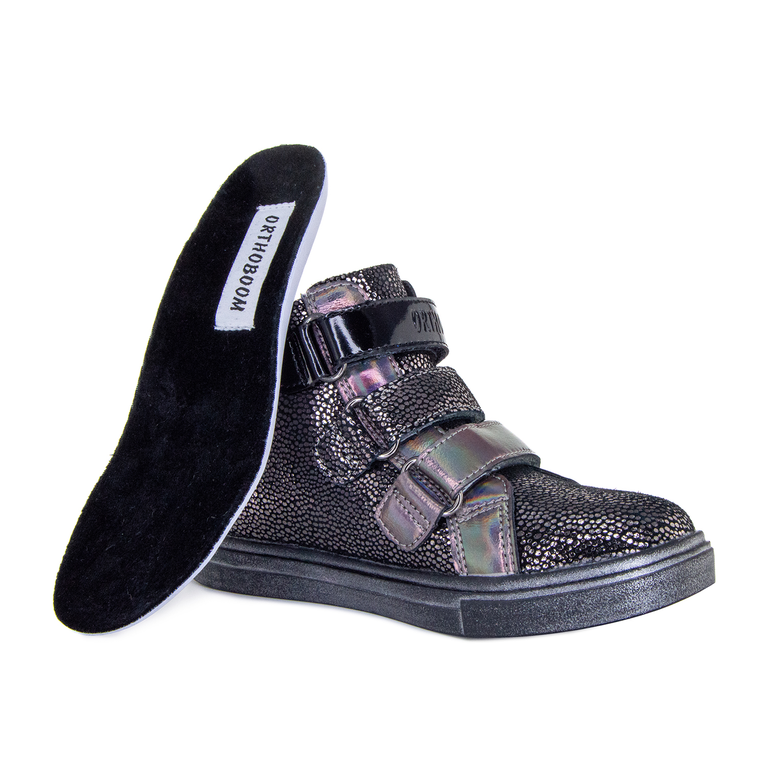 Детские демисезонные ботинки Orthoboom 87056-01 черный с серебром — качественная профилактическая обувь для здоровья детей. Практичные материалы верха (натуральная кожа) и подклада (флис) гарантируют идеальный микроклимат и отвечают за износостойкость обуви. Подходят для каждого ребенка. Предназначены для профилактики плоскостопия и сколиоза. Также рекомендуются для коррекции начальных форм плоско-вальгусной деформации стоп.