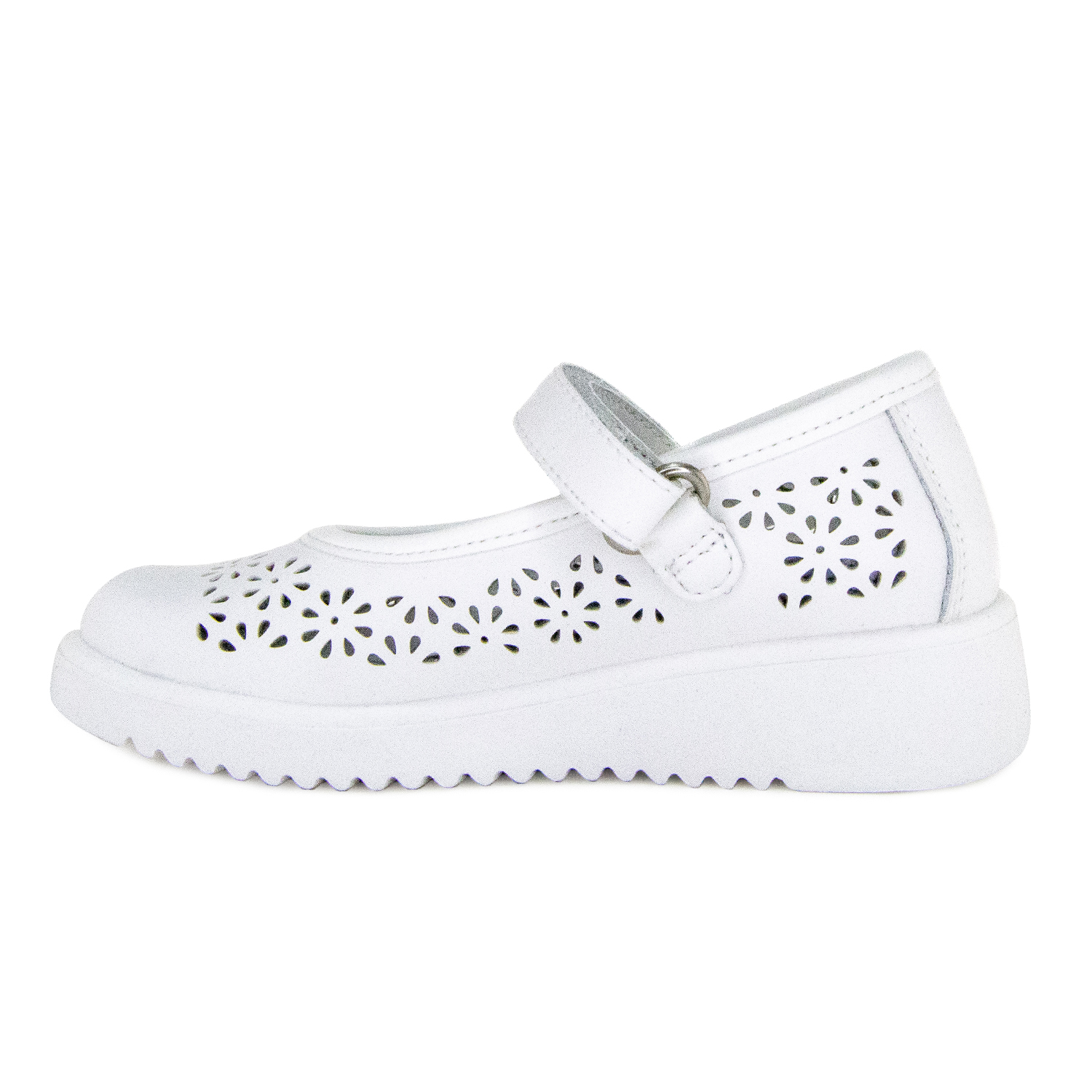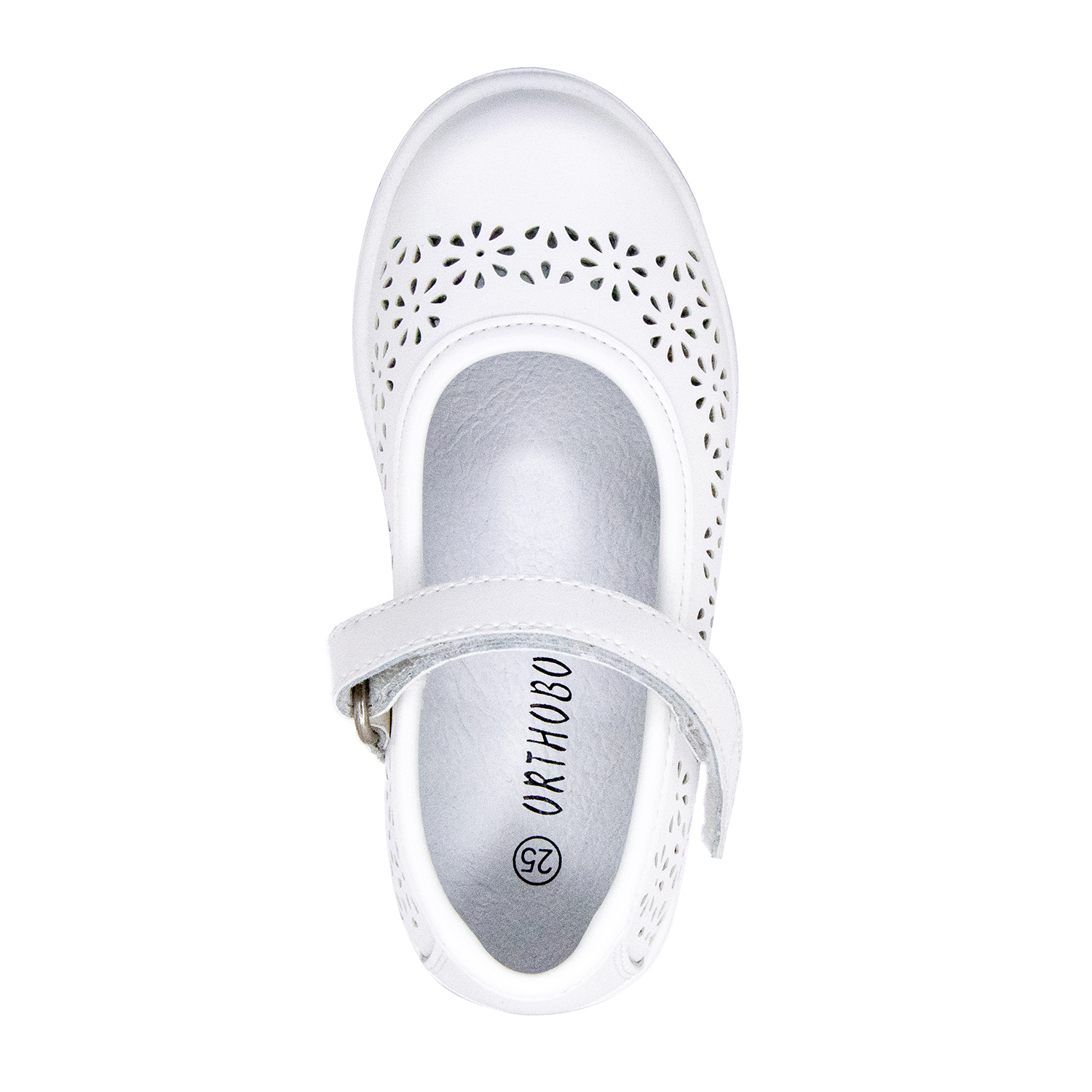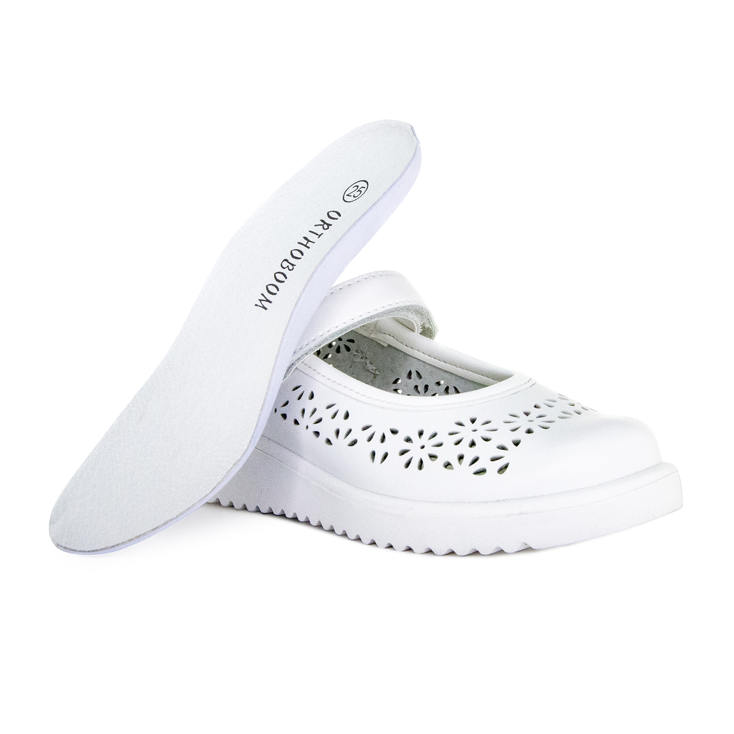 Ортопедические туфли Orthoboom 47397-10 белый с перфорацией отлично подходят для детских праздников и повседневных прогулок. Их можно взять в качестве сменной обуви в школу или детский сад. Ребенку в них будет комфортно. Обувь способствует профилактике развития плоскостопия. Плотный формообразующий задник PreVent ставит и поддерживает стопу в анатомически правильном положении. Съемная стелька-тренажер StepEx с поддержкой сводов стопы и углублением для пятки равномерно распределяет нагрузку по стопе. Такая конструкция стельки также способствует естественному укреплению мышц стопы. Подошва гибкая, не скользящая с перекатом в носочной части, комфортная, способствует формированию правильной походки. Подходит каждому ребенку для профилактики, а также рекомендована при начальных признаках развития вальгусной установки стоп.