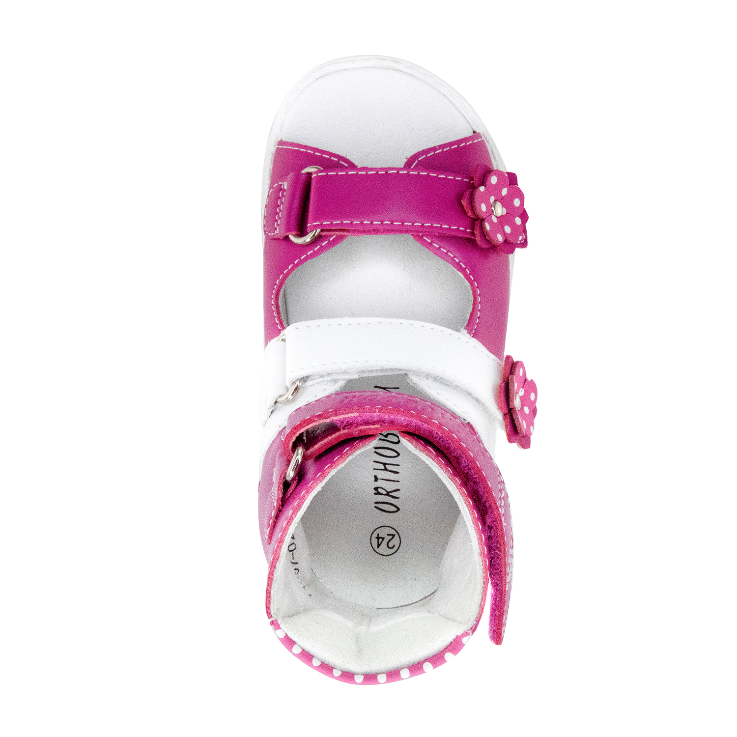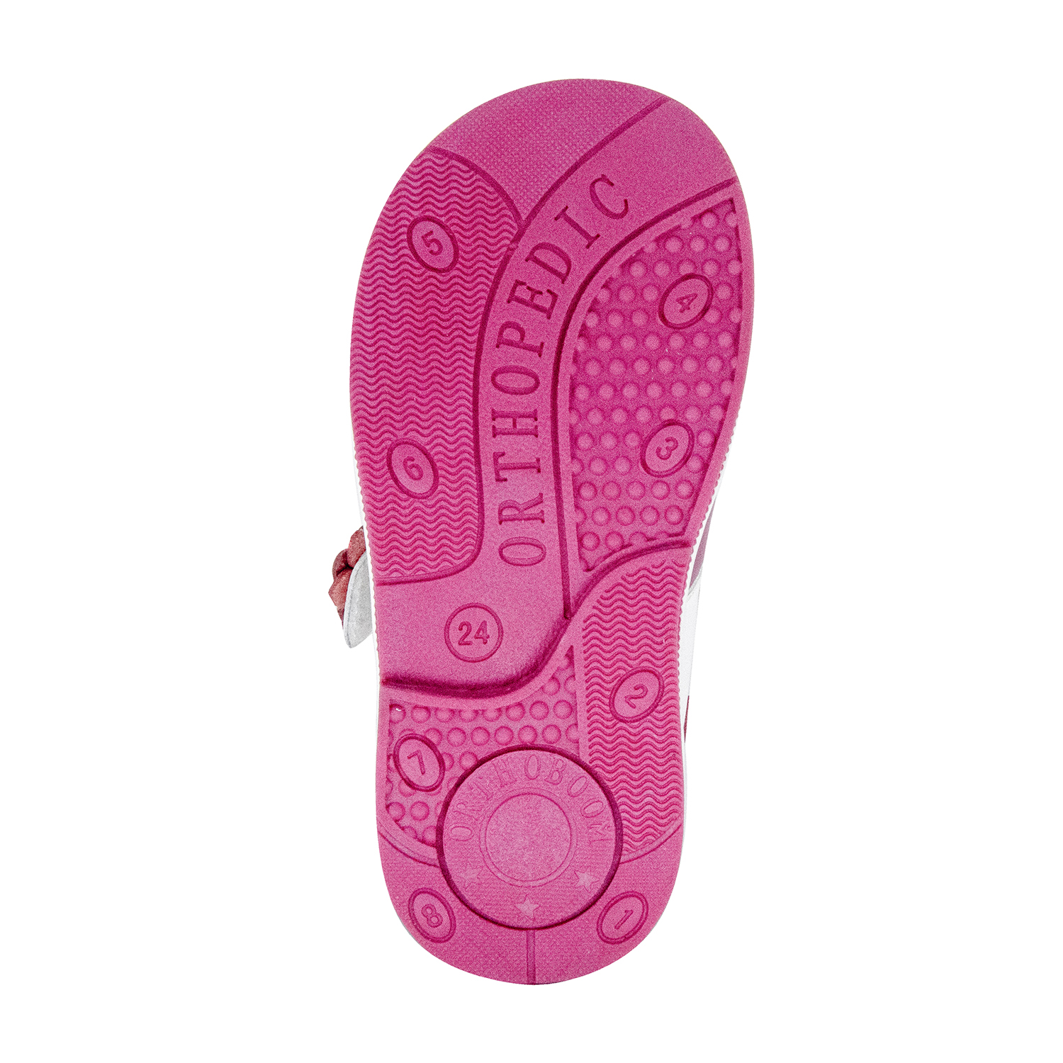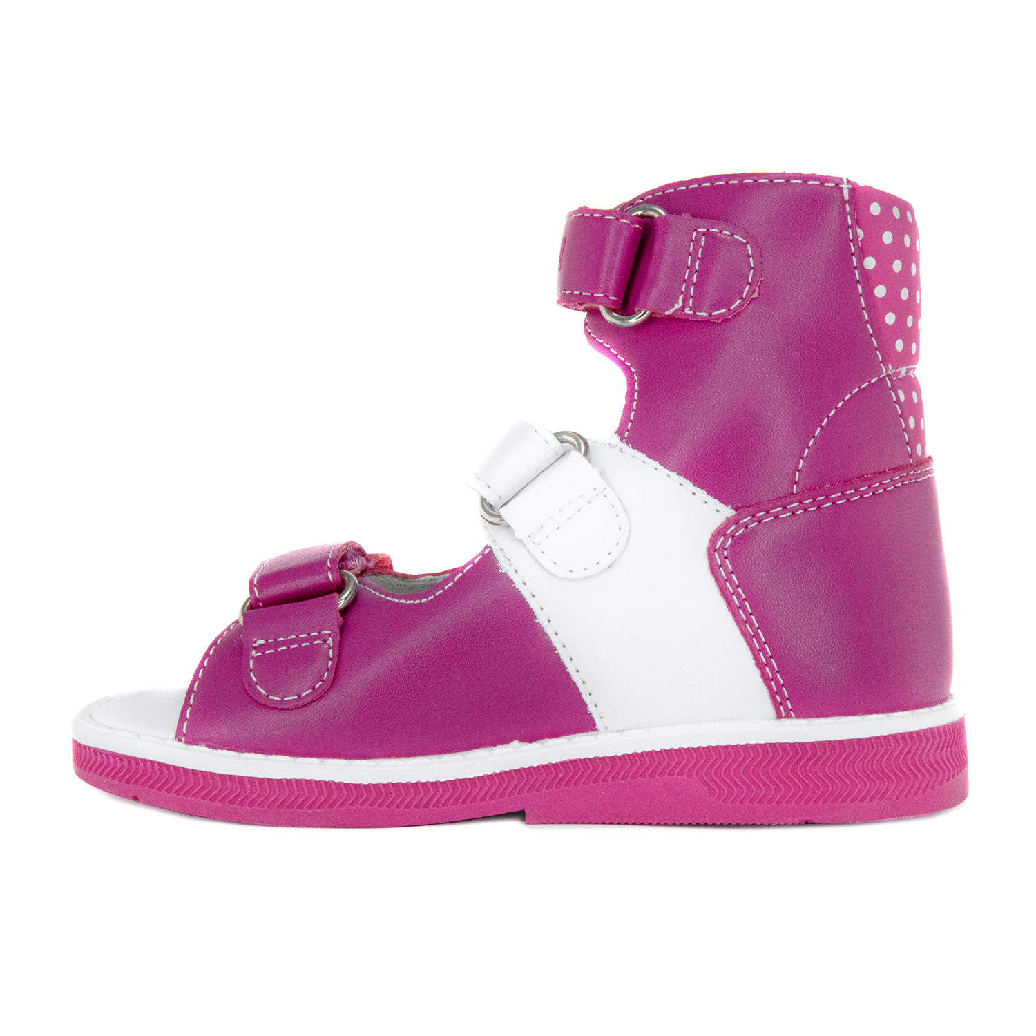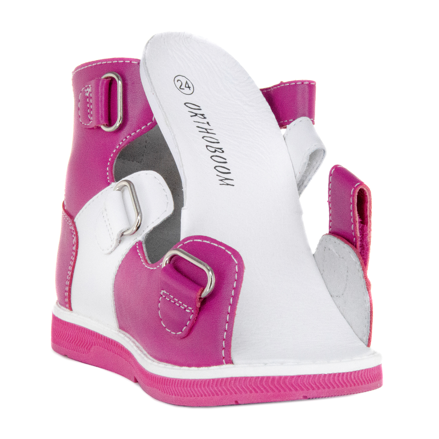 Детские сандалии с высоким берцем Orthoboom 71057-02 пурпурный с белым — модная ортопедическая модель. Итальянский дизайн. Максимально комфортна для ребенка. Показаны при плоско-вальгусной деформации стопы, X-образной форме ног, ДЦП. Регистрационное удостоверение Росздравназдора. Обувь отличается особенностями в конструкции, что делает ее очень удобной для ребенка.