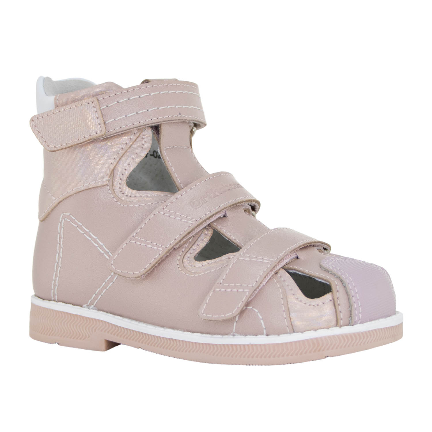 Детские сандалии с высоким берцем Orthoboom 81057-02 пыльно-розовый с перламутром — модная ортопедическая модель. Итальянский дизайн. Максимально комфортна для ребенка. Показаны при плоско-вальгусной деформации стопы, X-образной форме ног, ДЦП. Регистрационное удостоверение Росздравнадзора. Обувь отличается особенностями в конструкции, что делает ее очень удобной для ребенка.
