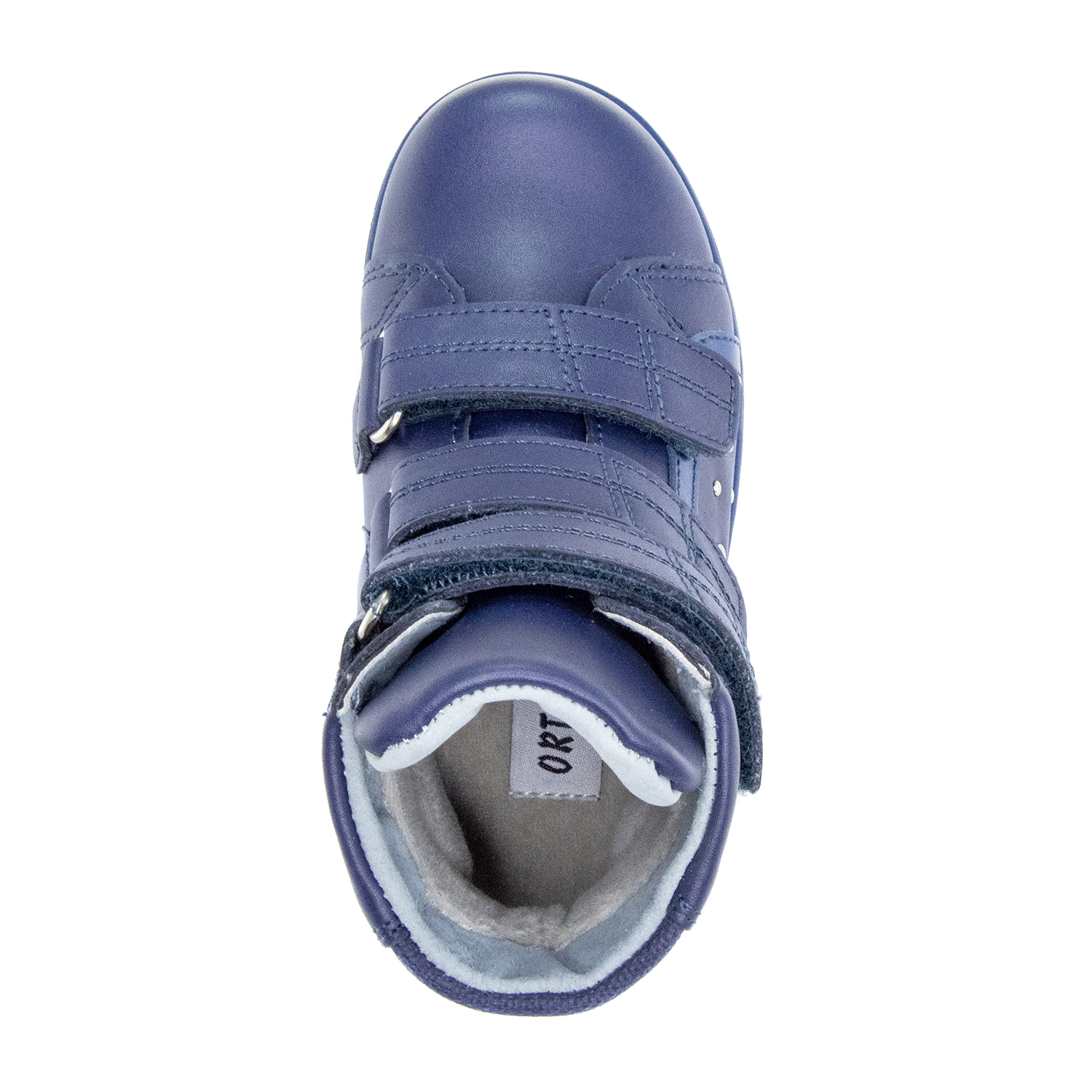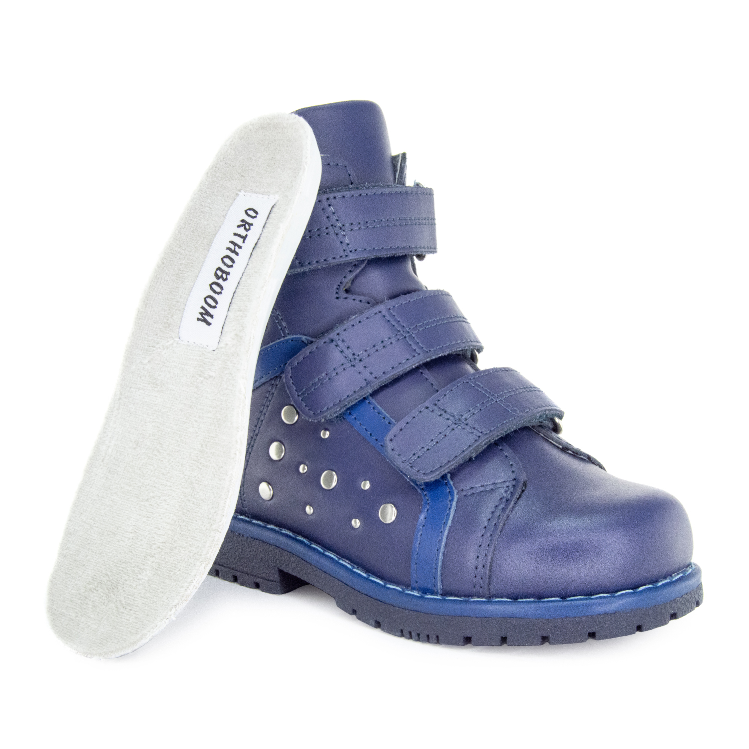 Детские ортопедические полуботинки с высоким берцем Orthoboom 91594-40 синий — стильная ортопедическая лечебная модель. Сезон весна-осень. Итальянский дизайн. Максимально комфортная для ребенка. Показаны при плоско-вальгусной деформации стопы, X-образной форме ног, ДЦП. Регистрационное удостоверение Росздравназдора. Обувь отличается особенностями в конструкции, что делает ее очень удобной для ребенка.