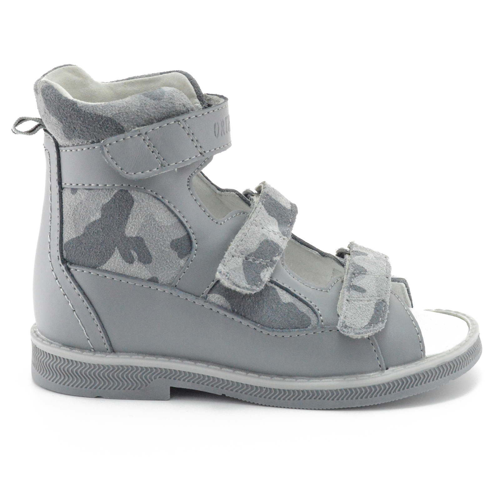 Детские сандалии с высоким берцем Orthoboom 71057-04 серый — модная ортопедическая модель. Итальянский дизайн. Максимально комфортна для ребенка. Показаны при плоско-вальгусной деформации стопы, X-образной форме ног, ДЦП. Регистрационное удостоверение Росздравназдора. Обувь отличается особенностями в конструкции, что делает ее очень удобной для ребенка.