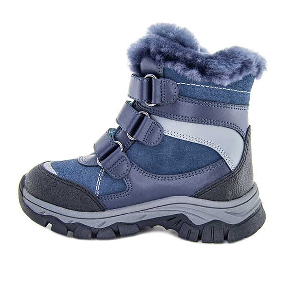 Детские зимние полусапожки Orthoboom 67054-03 темно-сапфировый с серым — качественная профилактическая обувь для здоровья детей. Практичные материалы верха (натуральная кожа) и подклада (натуральный мех) гарантируют идеальный микроклимат и отвечают за износостойкость обуви. Ребенку в них тепло и комфортно. Подходят для каждого ребенка. Предназначены для профилактики плоскостопия и сколиоза. Также рекомендуются для коррекции начальных форм плоско-вальгусной деформации стоп.