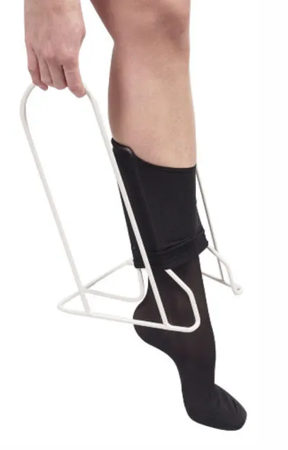 Металлическое приспособление предназначено для облегчения процесса надевания компрессионного трикотажа, а так же для предотвращения повреждения трикотажных изделий.