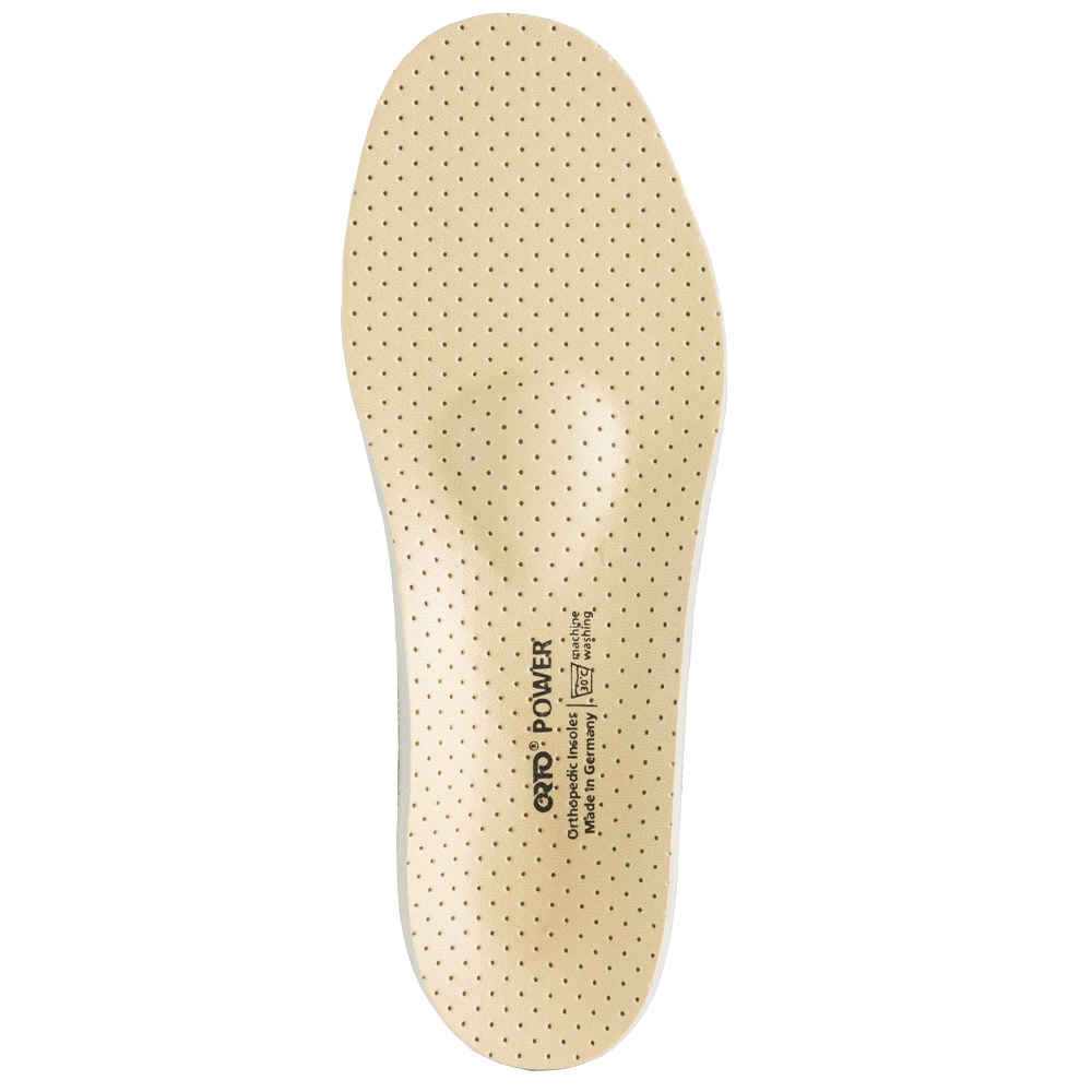 Стельки Orto Power с классической формой носочной части на прочном пластиковом каркасе с выраженным анатомическим рельефом и каплевидным отверстием в области пятки. Стельки имеют приподнятые бортики, продленные до 2/3 стельки. В конструкции стелек Orto Power использован слой мягкоупругого материала Carbosan. Поверхность стелек покрыта абсорбирующей тканью, содержащей хлопок.