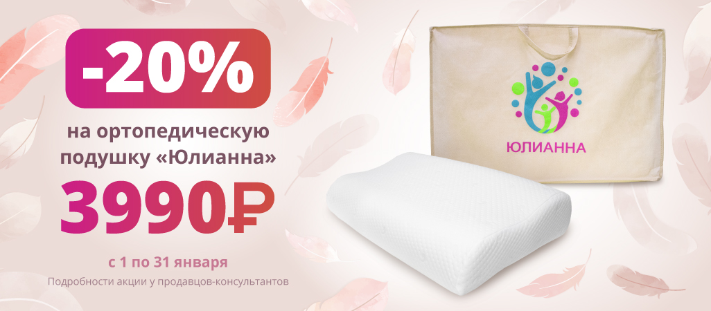 Спешите приобрести ортопедическую подушку Юлианна прямо сейчас и подарите себе здоровый сон и прекрасное самочувствие каждый день! Акция действует только в январе!